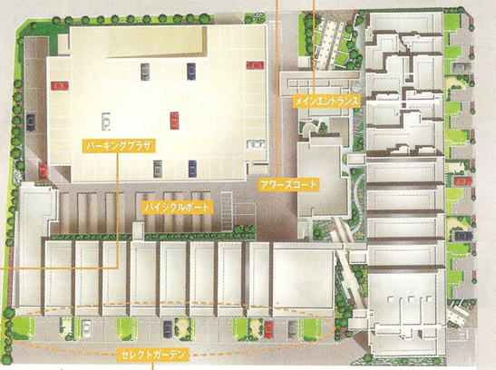 | 立体駐車場をL字型に囲む外周部には、並木と季節感のある花木等を植え込み、 | |||||||||